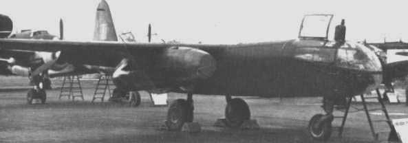 Ar234B-2b 1./(F)33 vkz (8H+DH) WNr.140476 Captured By RAF AirMin 26 (VK877) At-Karup-Grove Airfield Denmark 1945 Then, At Farnborough Display Later, Ferried to Brize Norton, Near Carterton, Oxfordshire, UK For Storage