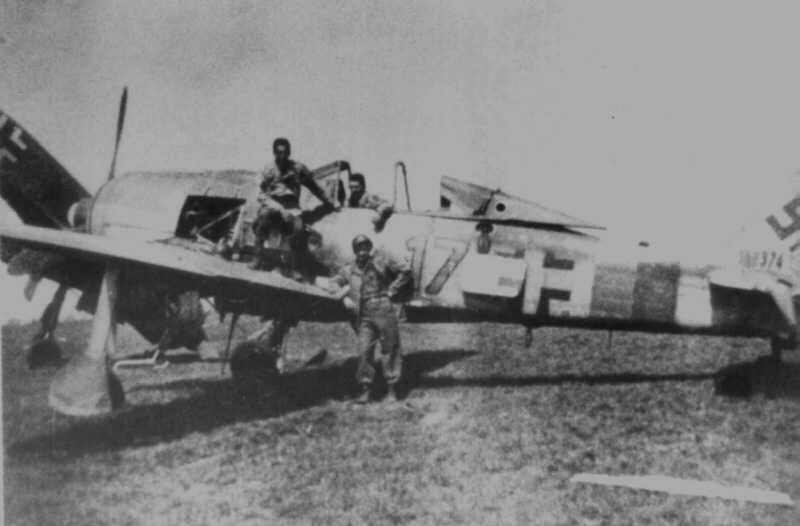 FW190A-5 with No MGFF 20mm Outer Wing Cannons & Pilot Sitting On Nose with Flight Jacket & Signal Flares On Leg Band & Two Mechanics Waiting On the Wing For Next Alert
