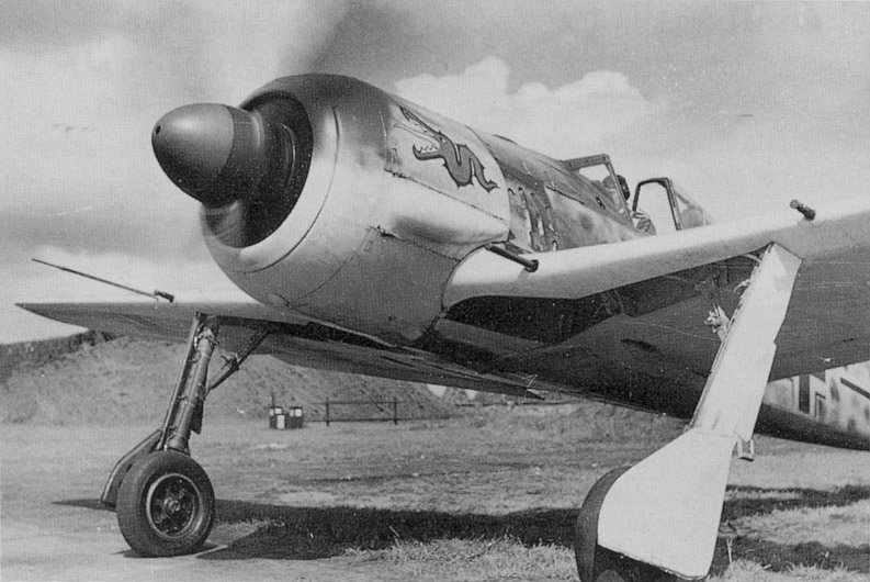 FW190A-3 II.5./JG 1 Black(3+-) 5th-Staffel Red Tatzelwurm with Yellow Tongue Emblem & II-Gruppe Red Front to Spinner Flown By Oberfahnrich (Warrant Officer) Ernst Terborg At Katwijk, Holland Summer 1942