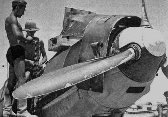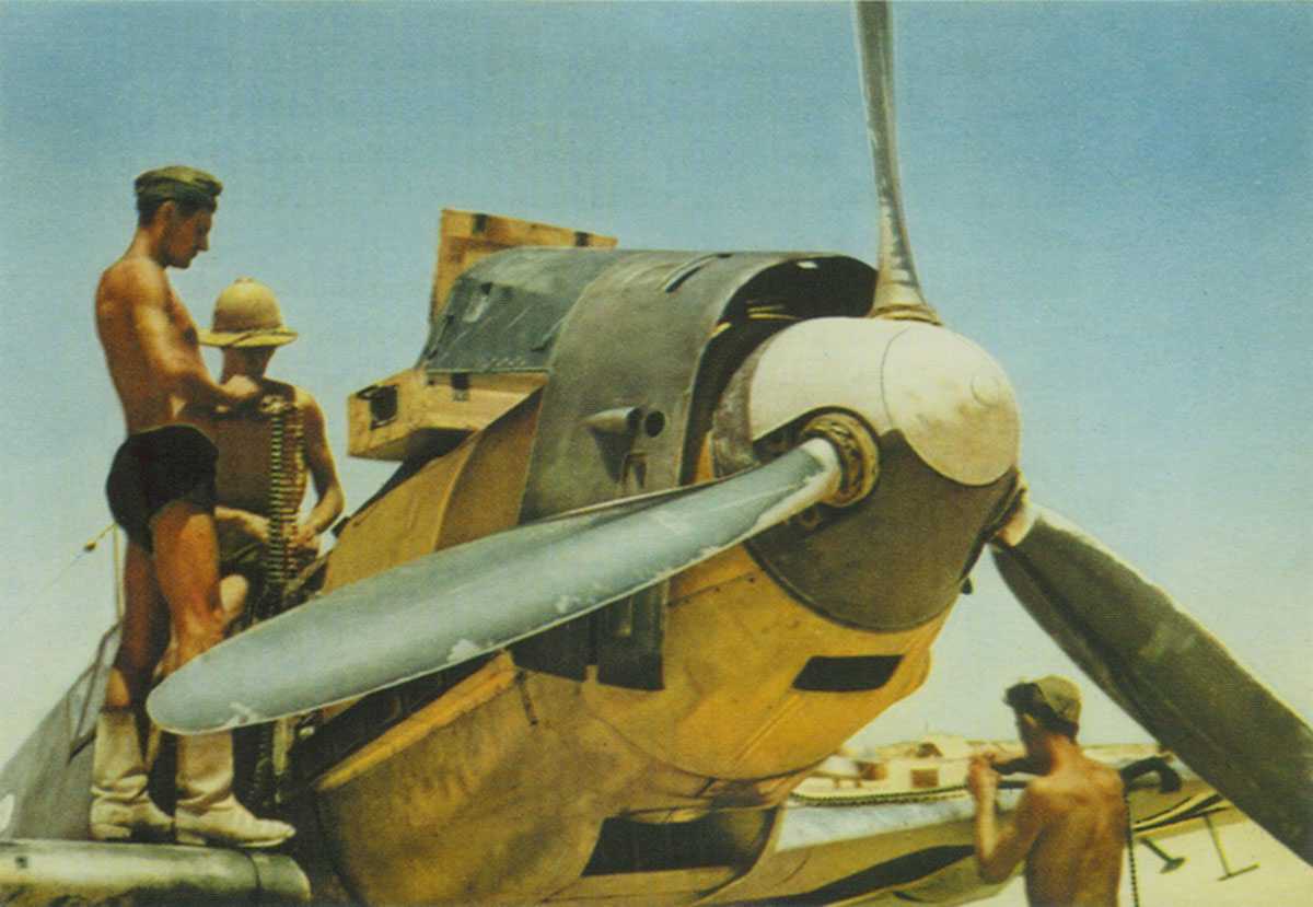 Me109E-7/Trop JG27 Loading 7.92mm Ammunition For MG17 Nose Machine Guns Note That VDM Propeller Has Significant Sand Scouring On Leading Edge At Ain El-Gazala, Cyrenaica,