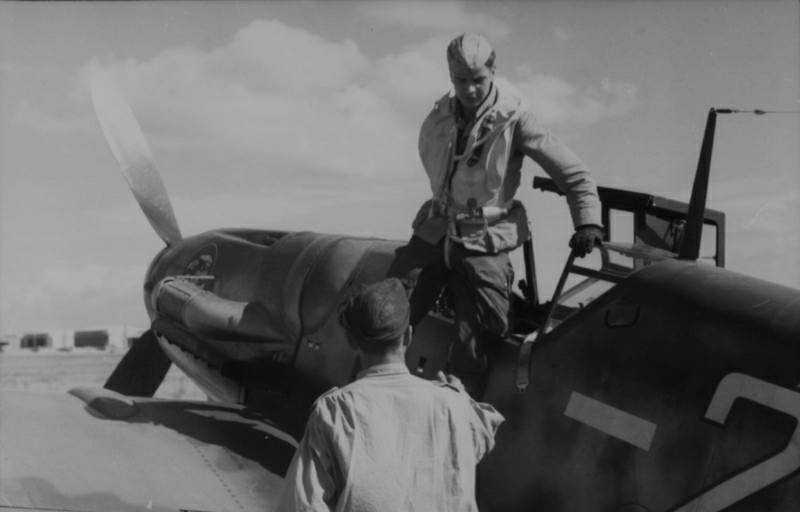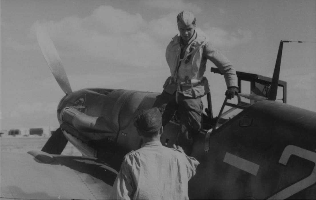 Me109-G6Trop II.6.JG51 Yellow(-2+) Pilot Disembarking Aircraft Wearing FL-30154-2 CO2 Inflatable Life Vest At Casa Zeppara, Sardinia, Italy