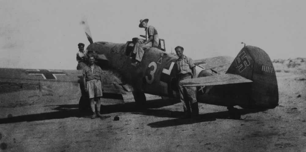 Me109F-4/Trop I.1./JG 27 White 5 WNr.8478 I-Gruppe Lioness Over Africa Emblem Found Abandoned & Damaged with Bent Propeller By RAF At El Adem Airfield, Libya, North Africa December, 1941