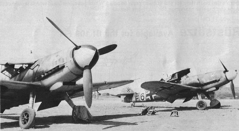 Me109F-4/Trop Stab/JG 27 (<II+) WNr.10271 II-Gruppe Staff Crest Bandaged Albion Lion Emblem Flown By JG 27 Geschwader Chief-of-Staff Oberfeldwebel Otto Schulz At Ain El-Gazala, Cyrenaica, Libya December, 1941: