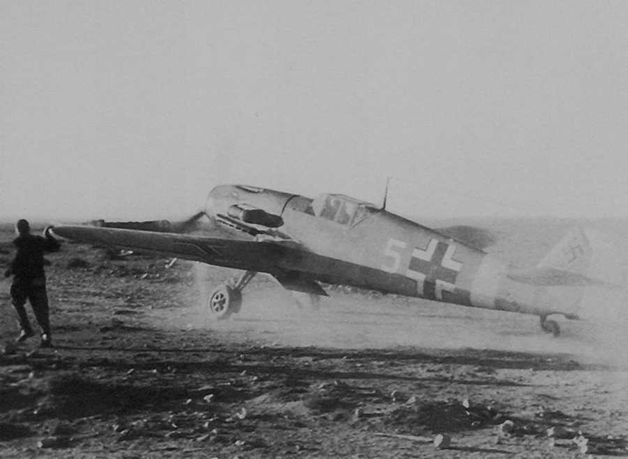 Later, Stab II./JG 27 Technical Officer Oberleutnant Otto Schulz In This Aircraft Shot Down a Hurricane That Belly-Landed & While Trying to Strafe That Plane On the Ground to Destroy It, a P-40 Behind Him Shot Him Down & MIA At Sidi Rezegh, Libya On June 17, 1942